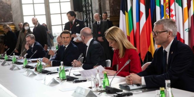 Po deviatich hodinách rokovaní na dvojdňovom samite vo francúzskom Versailles, ktorému dominuje ruská invázia na Ukrajinu, sa hlavy štátov a vlád zhodli na uznaní „európskych ašpirácií“ Ukrajiny, no ďalej o prijatí nie.