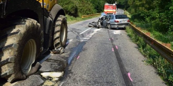 26.8.2019 (Webnoviny.sk) – Pri obci Tešmak v okrese Levice sa zrazilo osobné auto s kombajnom. Päťdesiatšesťročný vodič Peugeotu 406 zrejme v zákrute neprispôsobil rýchlosť a keď v protismere uvidel kombajn začal prudko brzdiť.