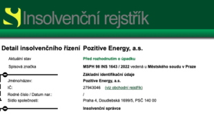Advokátní kancelář Langmeier & Co. podala 31. ledna 2022 insolvenční návrh na akciovou společnost Pozitive Energy. Jedná se o další společnost z portfolia Pavola Krúpy, bývalého majitele skupiny Arca Investments, která nesplácí svoje závazky a je fakticky v úpadku. Pavol Krúpa je předsedou představenstva Pozitive Energy. Insolvenční návrh na společnost …